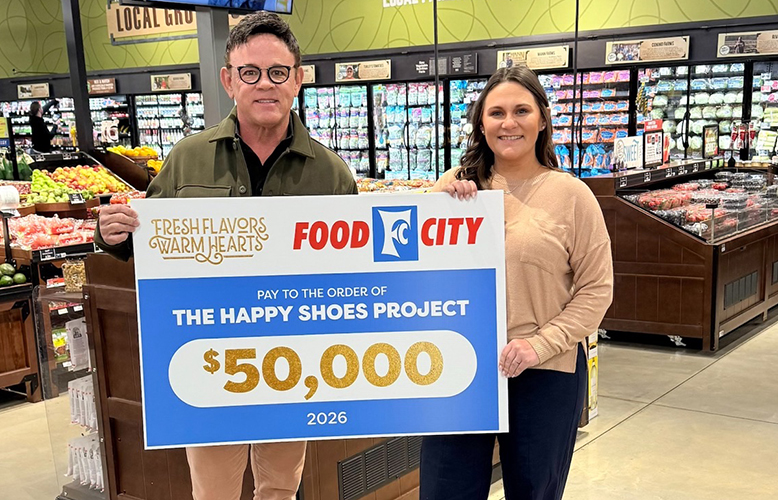 Food City is proud to continue our long-time support of The Happy Shoes Project with this morning’s check presentation totaling $50,000. These funds will benefit The Happy Shoes Children’s Division and their mission of inspiring cancer patients to KEEP WALKING. Pictured (left to right): Keith Sammons - Founder of The Happy Shoes Project Jaci Kazy - Food City Special Events Manager